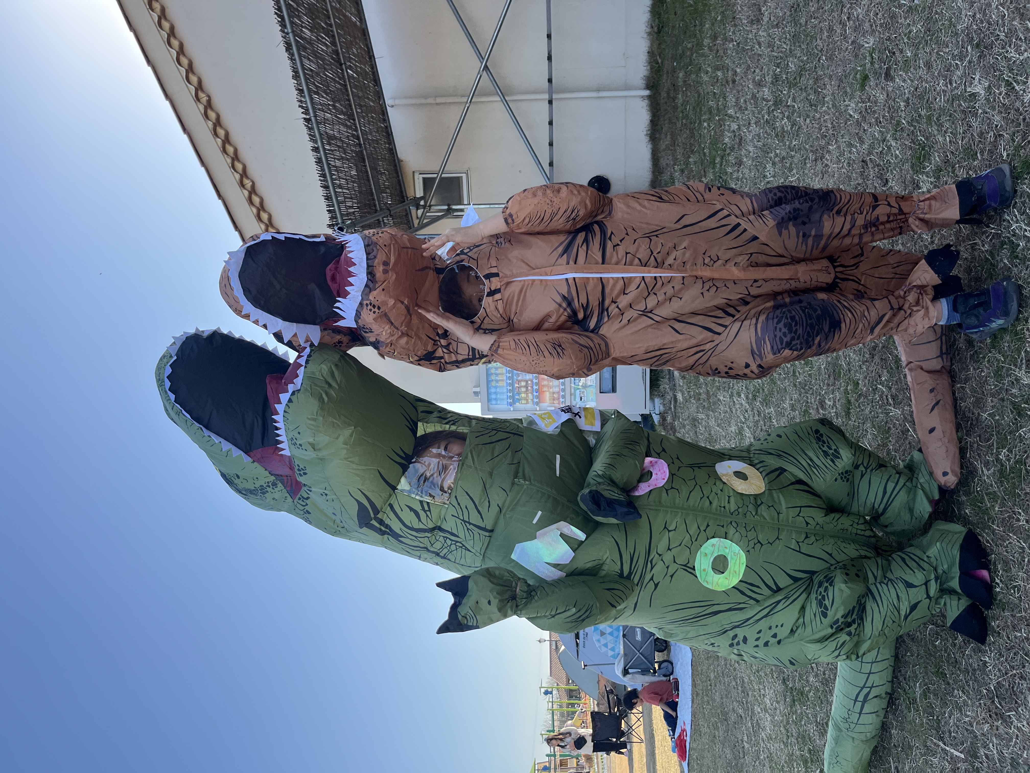 レース以外のタイミングでも、ティラノサウルスの姿で園内をティラ活!