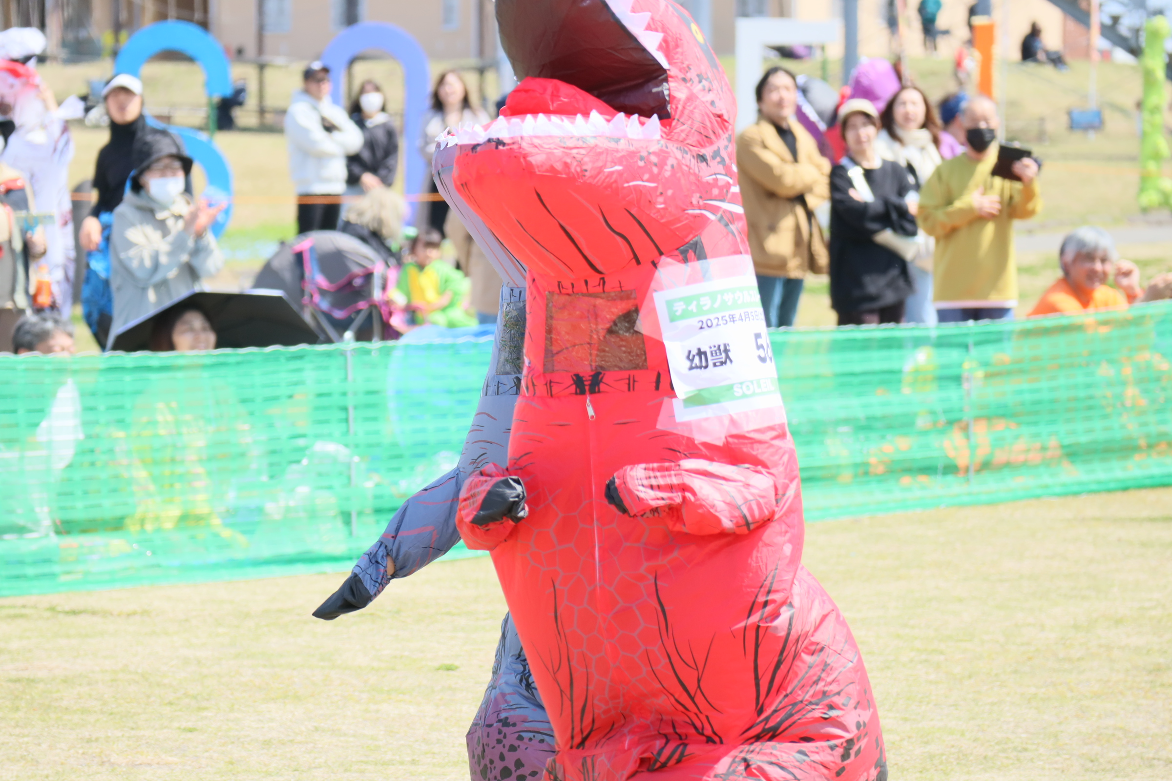 ーーーーー 小学生以下のお子様は先着100名様限定!予約が埋まり次第受付終了となります。 ※キャンセル待ちの仕組み設定はございません。キャンセルが出ると、自動的に予約ができるようになります。 ※当日枠はございません。 ※ティラノサウルススーツのオプション販売も限定数にてご用意しています。 ※本商品の予約者数は、前回大会の予約者数も含まれた数字が表示をされる場合がございます。 ーーーーー ソレイユの丘で毎回大好評のティラノサウルスレース! 皆さん一度は動画などで見たことある、あの姿になって、レースに参加してみませんか? 中学生以上の方々が参加できる『成獣の部』のほか、小学生以下の子どもたちが参加できる『幼獣の部』もご用意しており、公園を訪れる幅広い年代の方々にご参加いただけます。レース会場は、ソレイユ丘が誇る広大な芝生が魅力ののんびりはらっぱ。柔らかな芝生の上を、恐竜姿で全力で駆け抜ける爽快感を存分に味わう事ができ、レースの優勝者には、『オリジナルTシャツ、ソレイユの丘遊具回数券』などの豪華景品をプレゼントします。 当日は、ティラノサウルスの着ぐるみ姿で広い園内を散歩したり、園内にある飲食店で食事を楽しむなど、レース以外にも非日常な体験も。また、天気が良いと、富士山をバックにした特別な写真を撮る事が叶います。 ソレイユの丘で、三浦半島の自然を存分に味わいながら、恐竜たちが園内を駆け抜ける、大迫力のレースをお楽しみください。 日時:2026年1月17日(土)受付時間9:30~ 受付は9時30分から開始し、開会式の11時00分には、受付完了と、全ての参加の皆様のティラノスーツにレース番号ゼッケンの貼りつけ完了を目標としております。 ゼッケンの貼りつけにお時間をいただく場合がございますので、9時30分~10時30分の間になるべく早めにお越しいただけますと幸いです。 ※雨天決行・荒天時は中止する場合がございます。 ※参加により、イベント保険に自動加入しております。